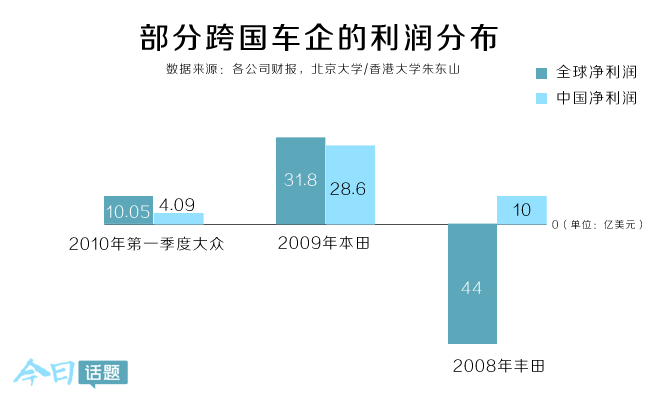 外国车企在中国的确赚的盆满钵满,种种数据都表明中国成了外企名符其实的“聚宝盆”。丰田汽车在2008年金融危机的时候,全球业务出现了44亿美元的亏损,但在中国却有10亿美元的利润。2009年的时候,本田汽车的全球净利润是31.8亿美元,当中有28.6亿由中国市场贡献。2010年第一季度,大众汽车税前利润10.05亿美元的利润,有4.09亿来自中国市场,几乎占了其利润的40%。…[详细]